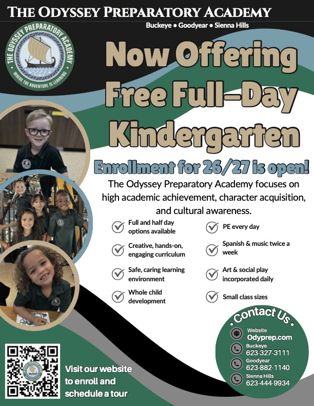 Currently, our beautiful campus boasts an active student-led, service club (Ambassadors) We host vibrant First Friday Community Events and have an active parent-volunteer base. Each day we strive to embody the principles upon which our school was founded, and we truly live out our culture of community! Welcome to The Odyssey Preparatory Academy- Buckeye (Apache) Campus.